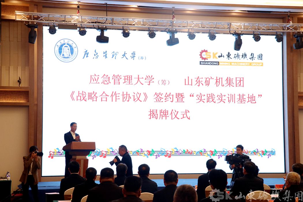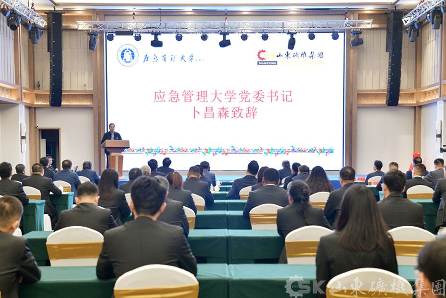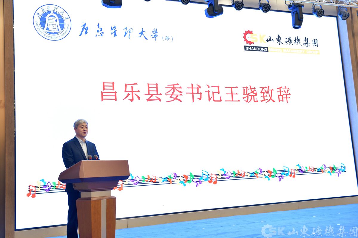 昌乐县委书记王骁致辞中,他对山东矿机集团一直以来为昌乐县做出的突出贡献表示感谢,对公司发展取得的成绩予以肯定,鼓励企业放手干事业,县委、县政府一定大力支持企业发展。应急管理大学党委书记卜昌森发表讲话,他高度赞扬了公司在煤机发展中的重要贡献,公司独具特色的企业文化,及在两位赵总的带领下企业取得的成绩,并希望双方能保持密切联系,坚持优势互补,推进和加强合作,切实发挥实践实训基地实效,实现产教融合,对双方广阔的合作前景进行了展望。