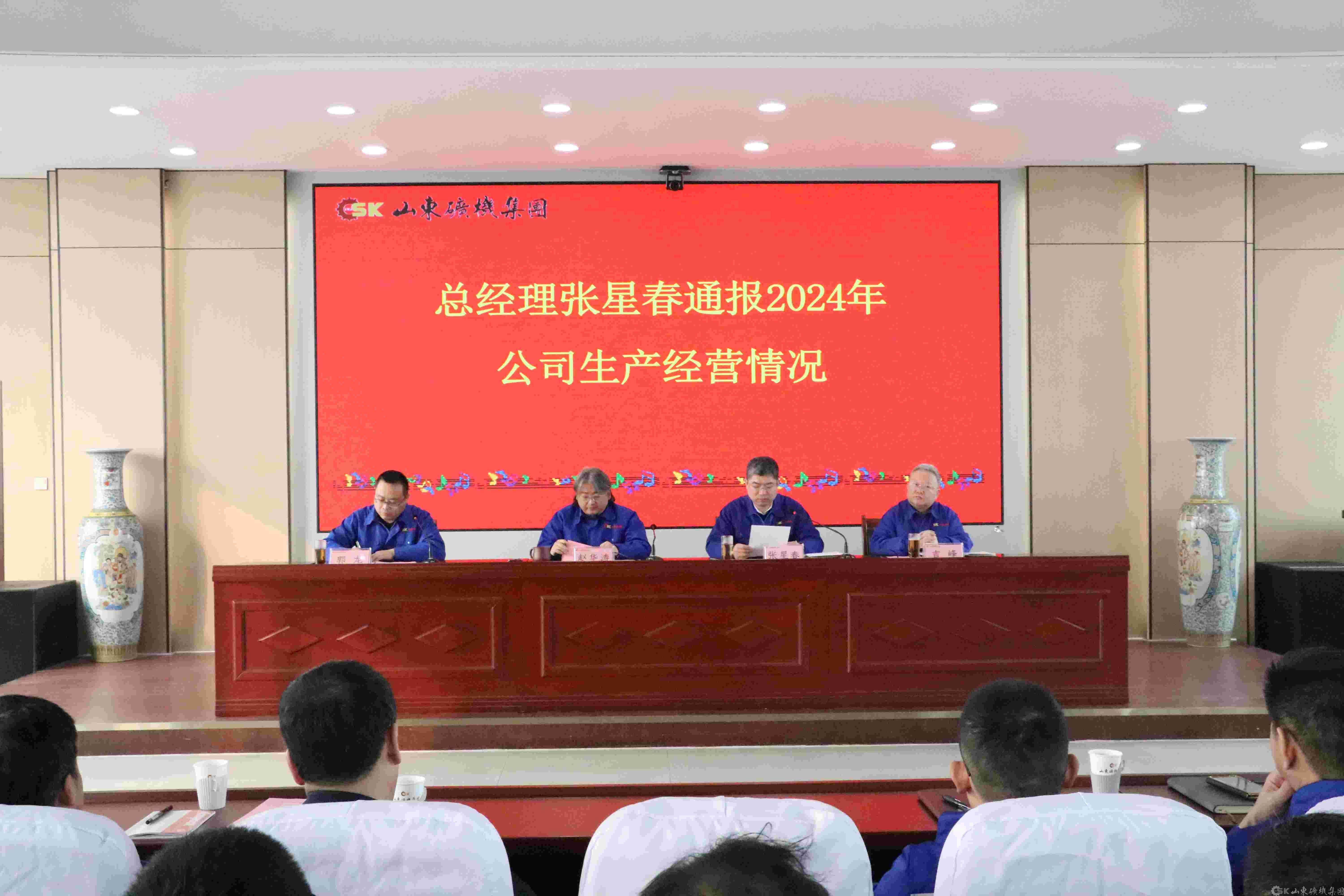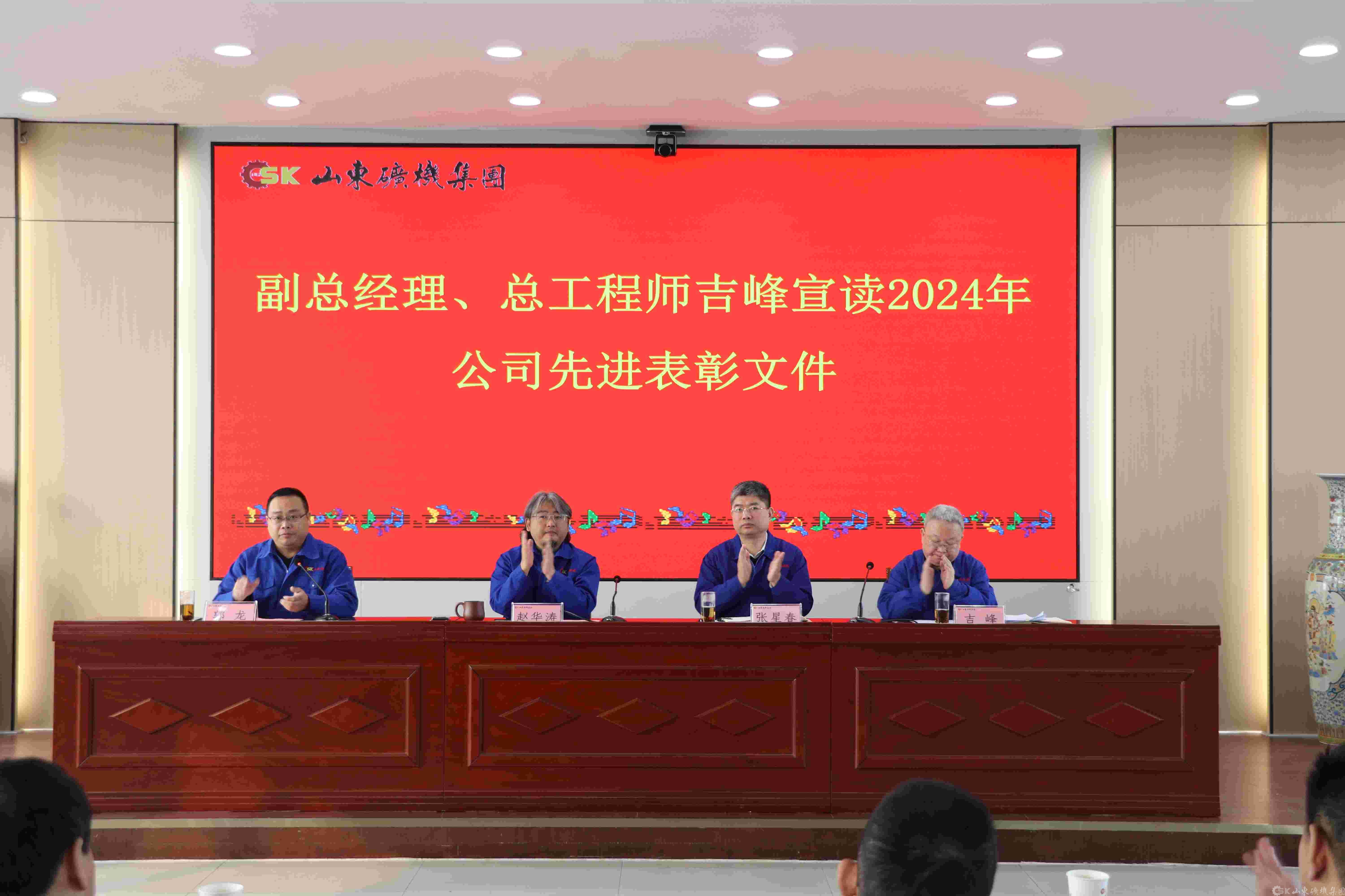 2025年1月24日上午9:00,山东矿机集团“2024年度总结表彰大会暨2025年工作动员大会”在六楼会议室召开,公司未出差的高层领导及职能部室、生产单位班组长以上人员参加了会议。