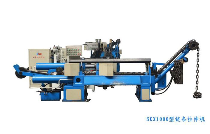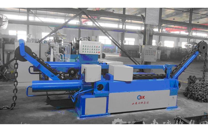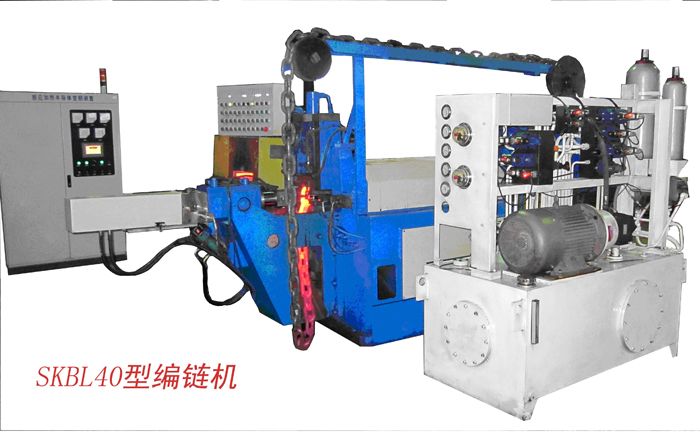 圆环链厂2000年引进德国技术研制制链设备,研制的SKBL系列编链机、SKHL系列焊链机、SKX系列拉伸机主要用于生产起重用链条、矿用链条,也可以生产美标NACM、ASTM链条、EN818-2标准链条等,它特别适用于直径Φ4—Φ52mm、节距12—170mm的各种规格圆环链的制作,所生产的圆环链,可用于手动葫芦、电动葫芦、矿山煤矿、水泥、船舶等处起重、牵引、传输、捆扎物品等,该系列生产线具有设计结构紧凑、布局合理、占地面积小、自动化程度高、安全设施齐全、调试及操作方便、生产效率高、产品质量好、节省原材料等特点。