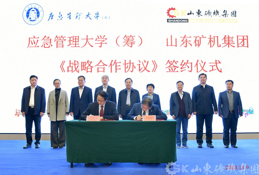 2023年11月9日上午9:00,山东矿机集团—应急管理大学(筹)《战略合作协议》签约暨“实践实训基地”揭牌仪式在桂水逸扉酒店宴会厅隆重举行。仪式由昌乐县委副书记、县长桑海强主持,应急管理大学党委书记卜昌森,潍坊市政府副市长、市工商联主席陈端梅,市应急管理局党委书记、局长王法顺,昌乐县委书记王骁,公司总顾问、原董事长赵笃学,公司党委书记、董事长赵华涛等领导及公司职工代表共同出席并见证签约、揭牌仪式。