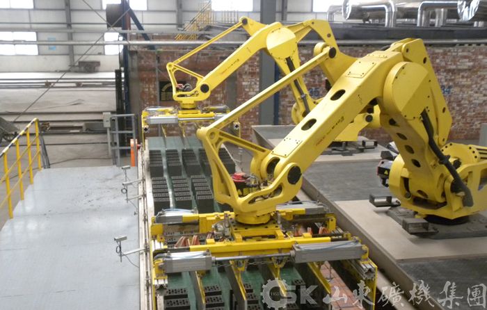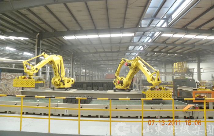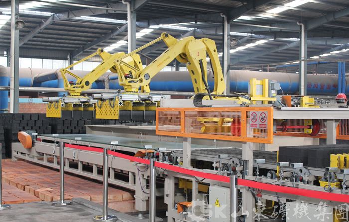 机器人自动码坯系统主要适用于新型建筑材料厂砖坯的切割、运输、码放、卸垛及受场地限制的老砖厂实现自动化码坯生产线的改造,码坯机器人具有投资小、耗能少、稳定性高、运转灵活,占地空间小等特点,与窑型及多功能编组的配套灵活,可满足不同产量下码坯及卸砖需求。该系统采用的机器人运动灵活、准确度高、承载力大,其高灵敏度碰撞检测功能,可以瞬时检测出碰撞并紧急停机,可有效防止因碰撞引起的对机械手和物品的损害。
